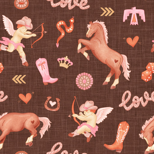 Cowboy Valentine Cupid Floral Brown