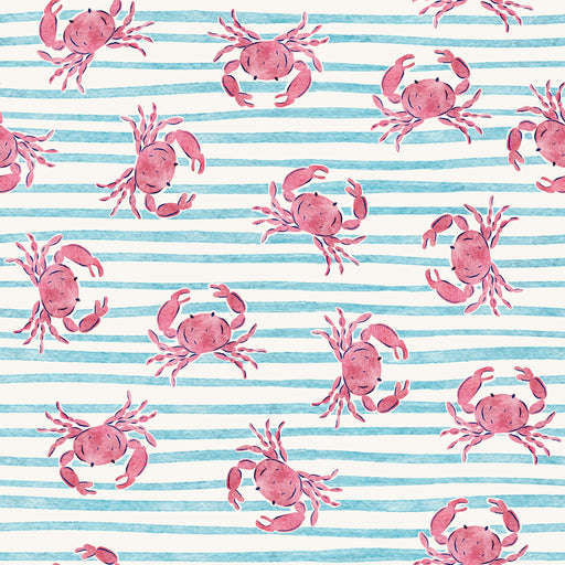 Aqua Watercolor Stripes and Crabs